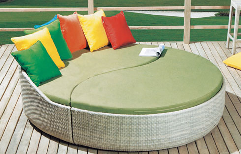 Bộ giường bãi biển tròn thiết kế sang trọng ZXFC025 Mẫu giường bể bơi thiết kế dáng tròn độc đáo có 2 nửa bạn có thể dễ dàng tách rời tạo thành những chiếc ghế ngồi thư giãn hoặc ghép lại thành một chiếc giường hoàn hảo.